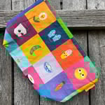 This fully lined small wedge will comfortably hold your in progress small accessory projects. It is approximately 8 inches tall, 13 inches wide and 4 inches deep. A loop handle attaches to the zipper via a swivel clasp for knitting "in the wild".