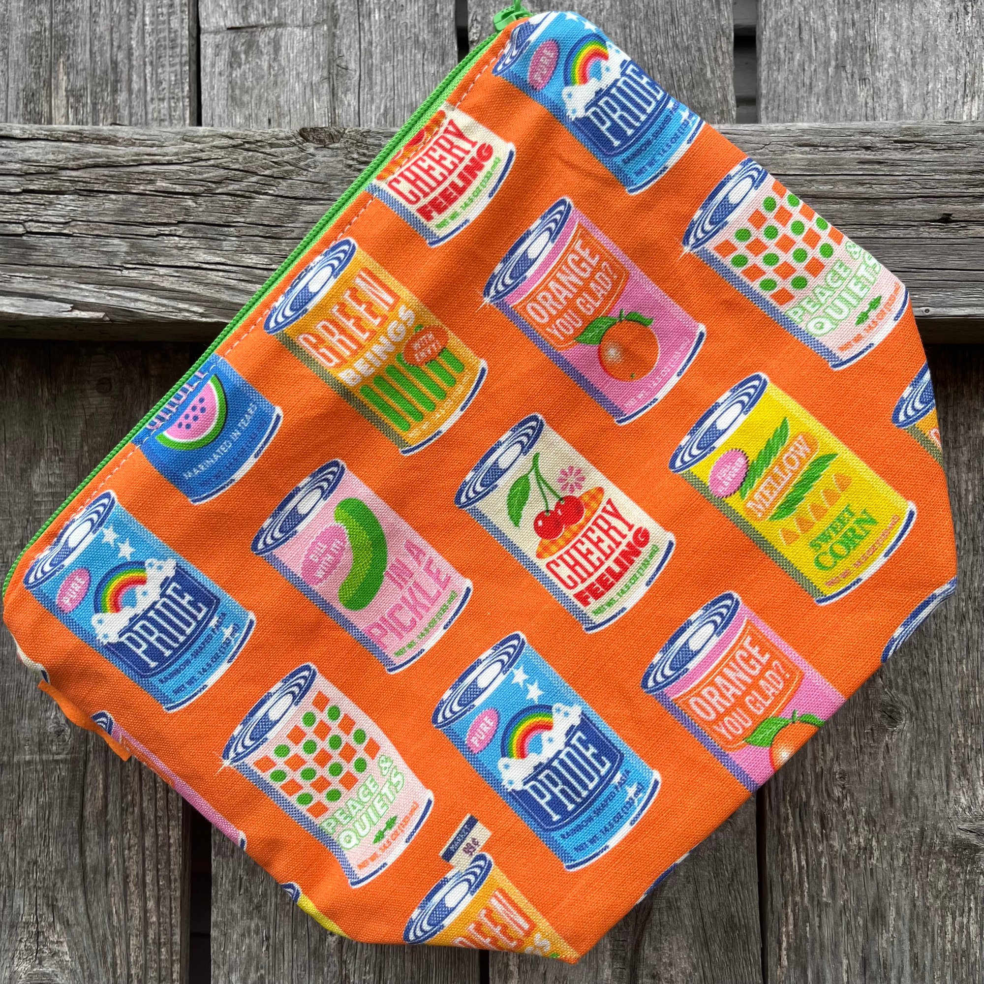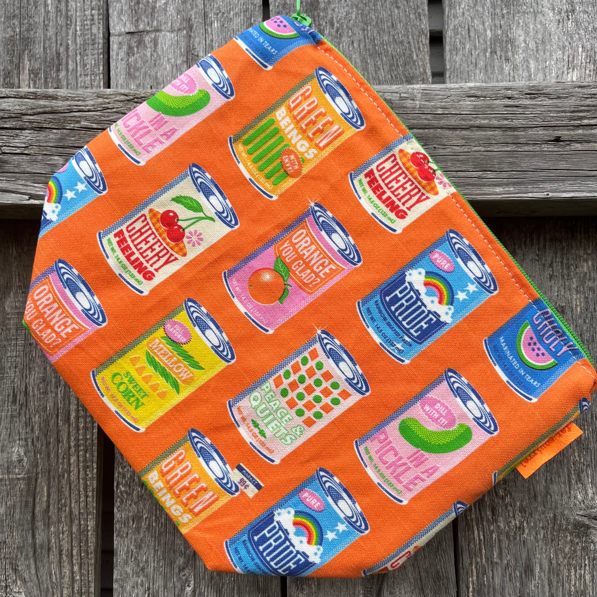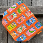 This fully lined sock wedge will comfortably hold your in progress sock knitting and is suited to small accessory projects. It is approximately 8 inches tall, 10 inches wide and 4 inches deep. A loop handle attaches to the zipper via a swivel clasp for knitting "in the wild".